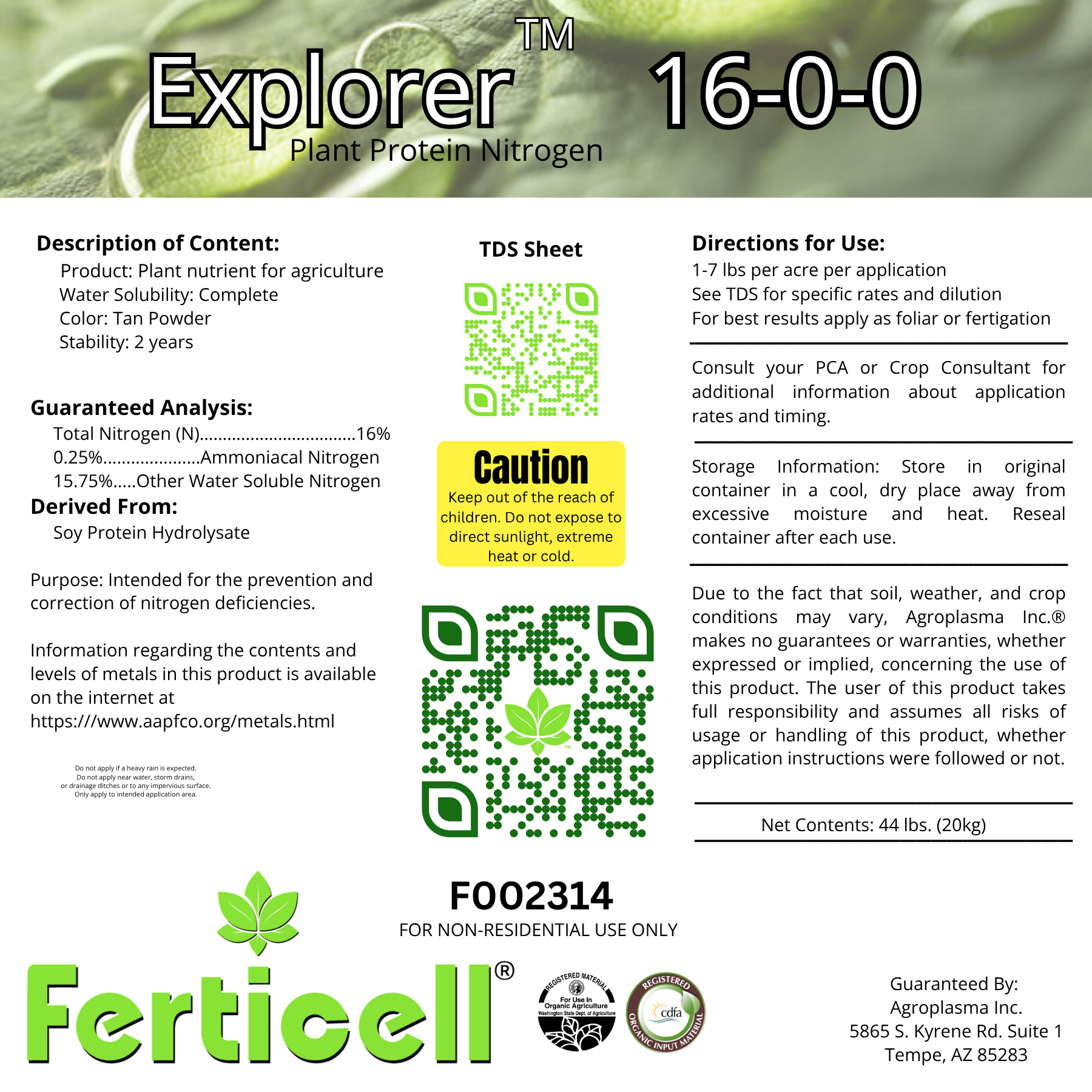 Today, Ferticell® Explorer™ 16-0-0 is our flagship plant-derived organic nitrogen protein fertilizer and is the purest form of soy protein nitrogen on the market today. Unlike other manufacturers, we have a very controlled, one source manufacturing process in Malaga, Spain to maintain quality control, and continually improve the manufacturing process to drive the purity. Depending on the scientific method used for analysis, Ferticell® Explorer™ is a minimum of 98.6% pure with the remaining “impurities” being moisture content.
