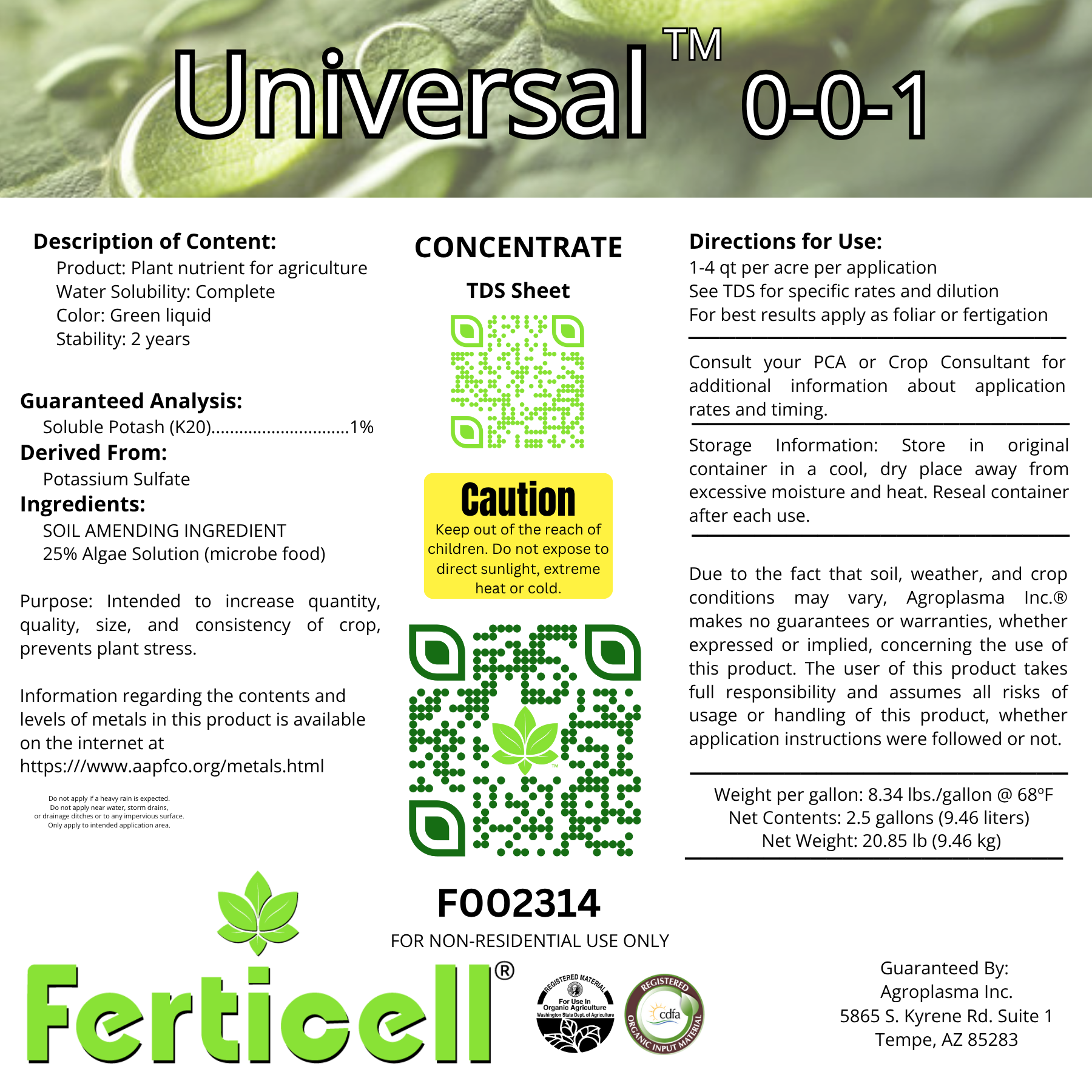 Universal™ consists of a fully soluble, high concentration of freshwater algae that is mechanically extracted from cultured tanks at our manufacturer’s facility in Spain.